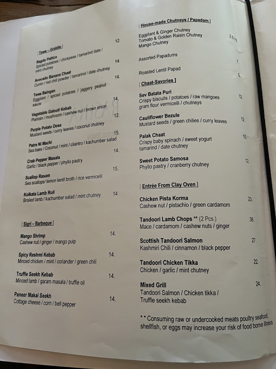 Price per piece. naan, onion sage naan and mint paratha.